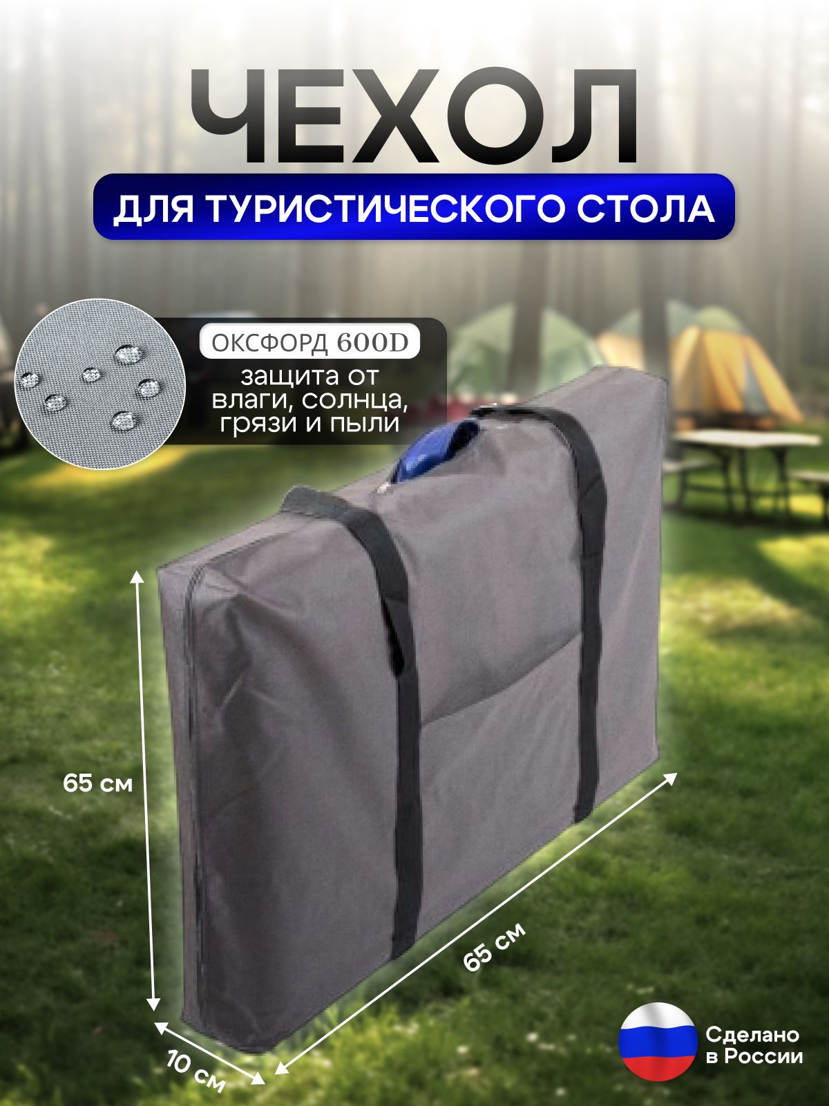 Чехол для туристического стола 65x65x10 – идеальное решение для защиты вашей кемпинговой мебели. Этот практичный аксессуар создан для любителей активного отдыха и путешествий, обеспечивая надежную защиту вашего стола от повреждений и неблагоприятных погодных условий. Чехол отлично подходит для хранения и транспортировки, благодаря компактному размеру и легкому весу.