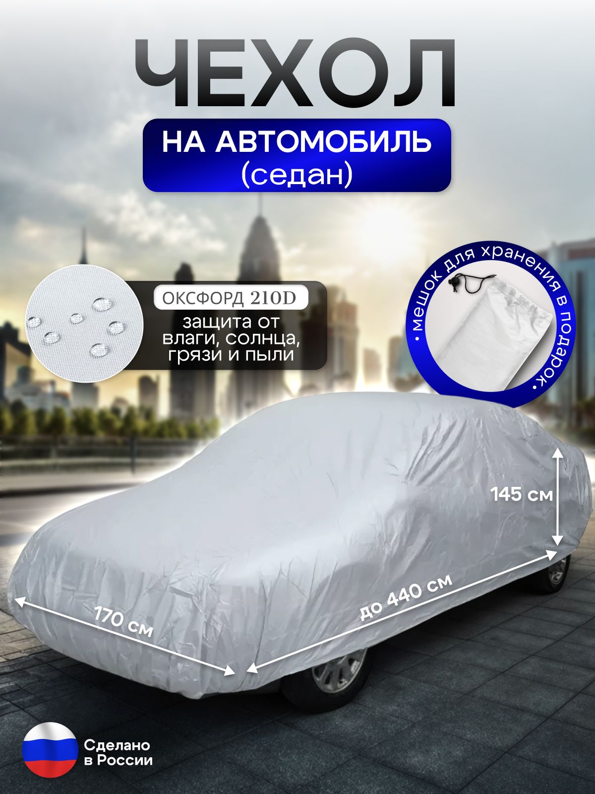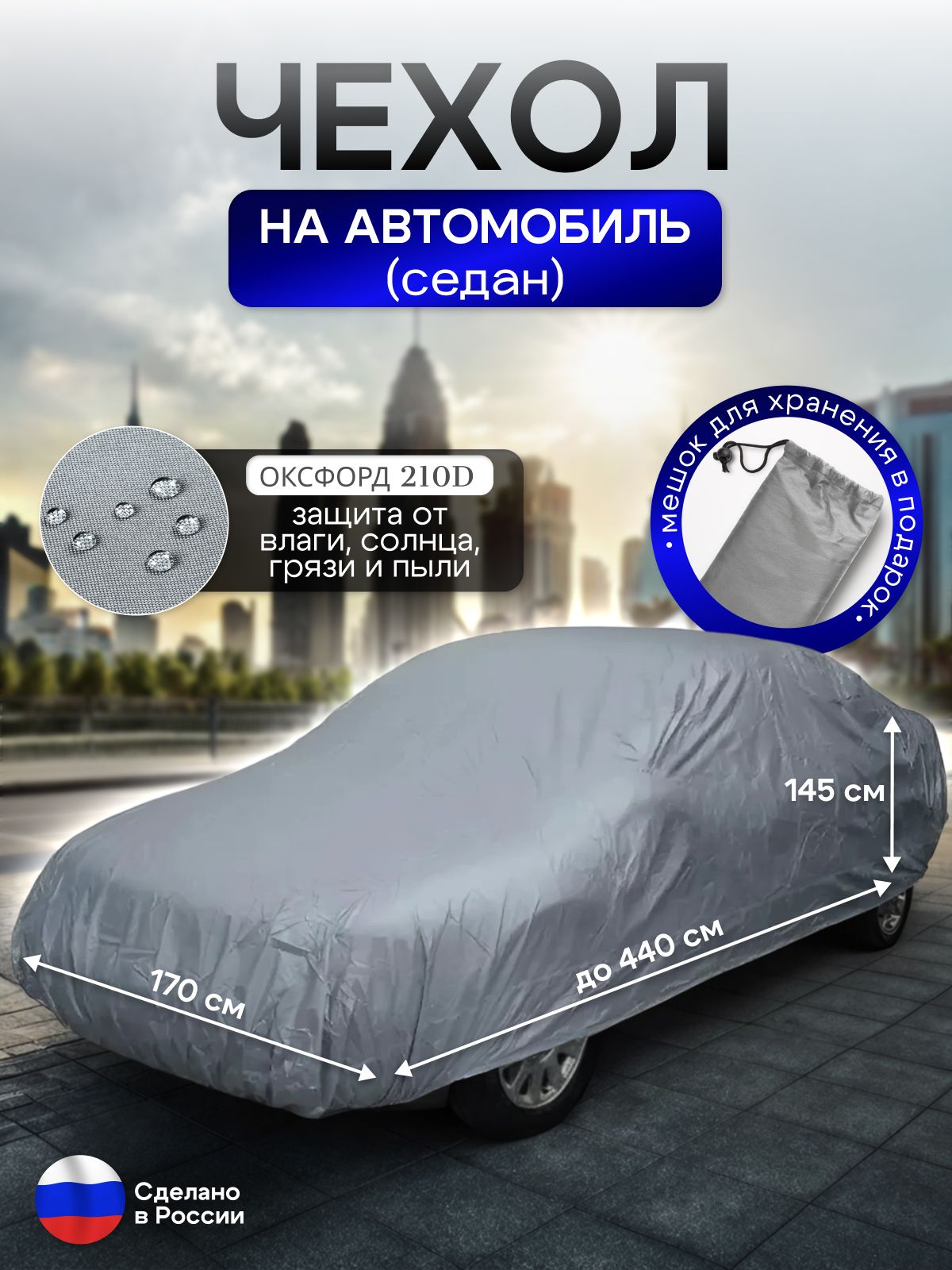 Представляем вашему вниманию универсальный чехол на автомобиль, который идеально подойдет для хэтчбеков с размерами до 440*170*145 см. Этот надежный аксессуар защитит ваше транспортное средство от различных внешних факторов, таких как дождь, снег, солнечные лучи и пыль. Изготовленный из высококачественного водоотталкивающего материала, чехол обеспечивает надежную защиту кузова, сохраняя его идеальный внешний вид на протяжении долгого времени.