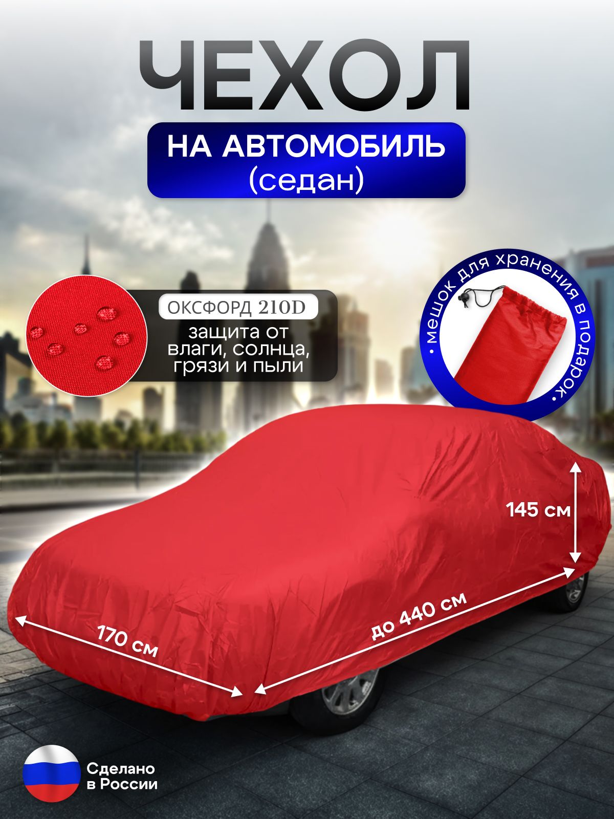 Легкий и компактный, этот чехол на автомобиль удобно хранить и транспортировать. Он легко надевается и снимается, что делает его идеальным выбором для повседневного использования. Независимо от времени года, вы сможете защитить свой автомобиль от неблагоприятных погодных условий.