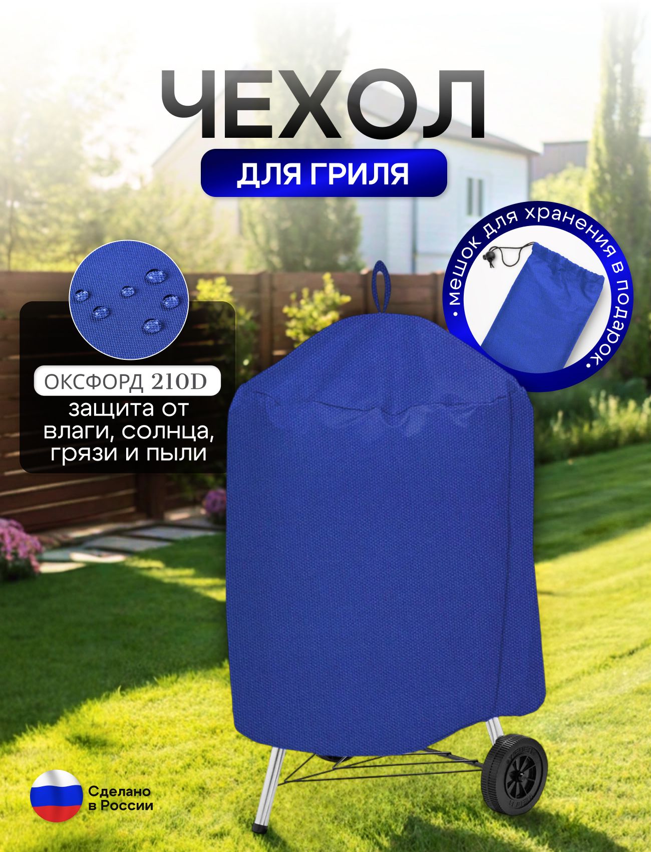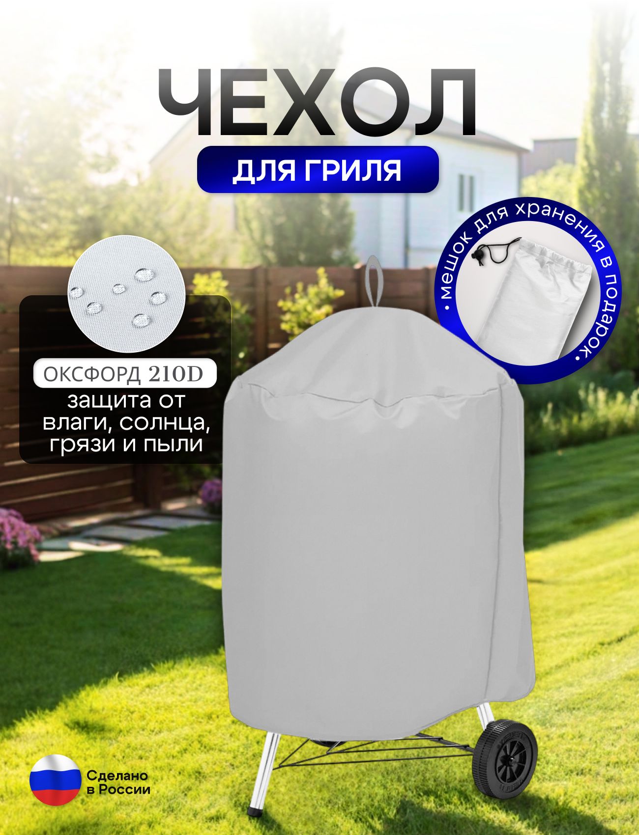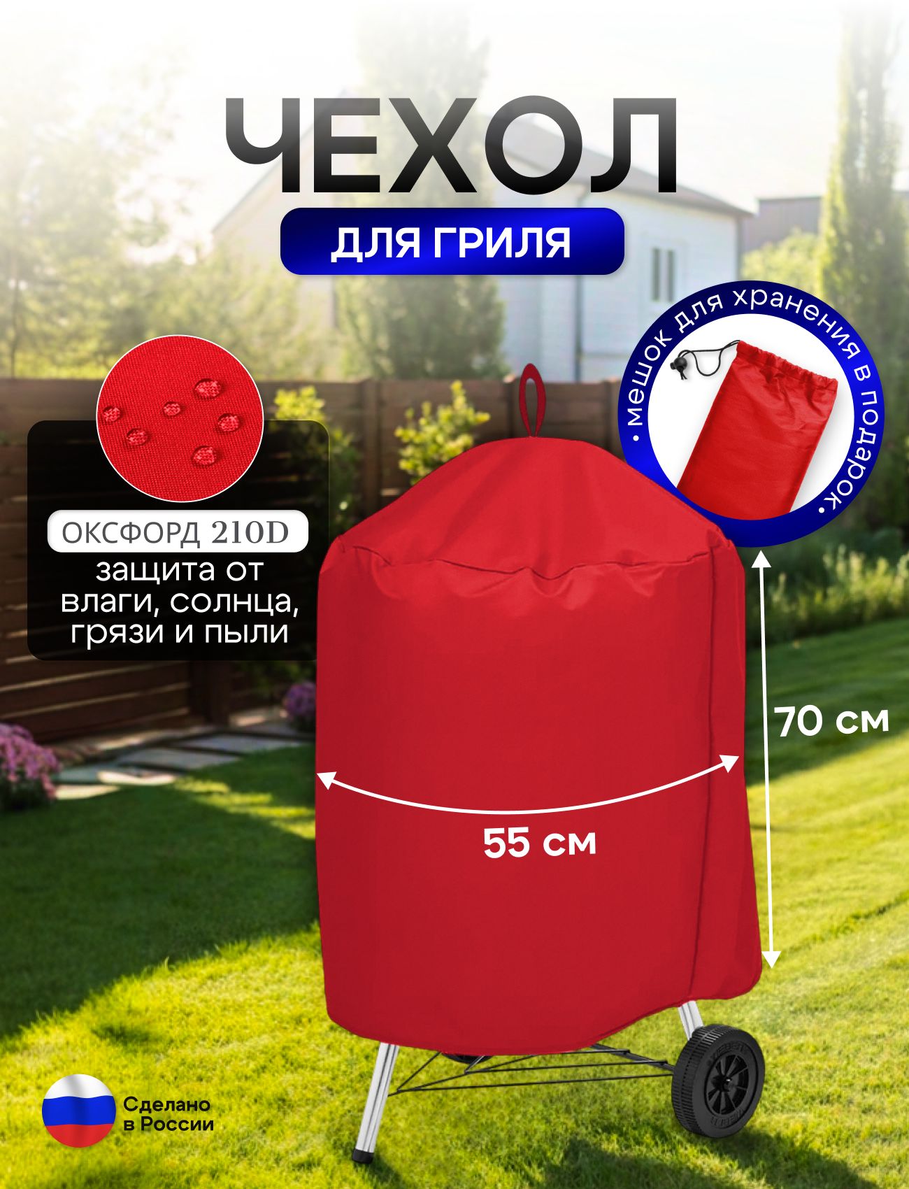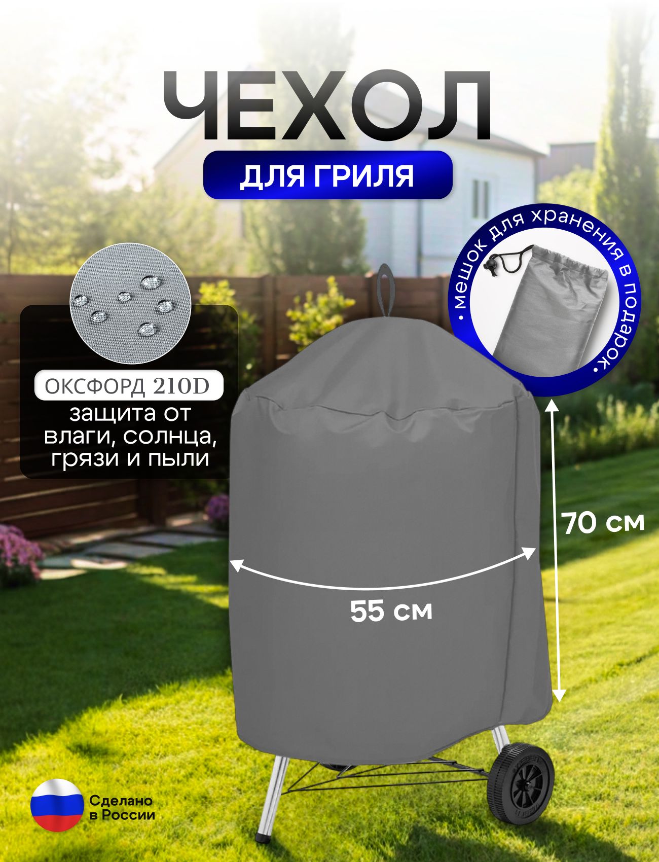 Подходит для всех грилей диаметром до 55 см, высотой до 70 см, благодаря своей универсальности. Защитите ваш гриль и продлите его жизнь с помощью этого практичного и стильного чехла. Отличный выбор для любителей пикников, барбекю и outdoor-активностей. Не упустите возможность обзавестись отличным аксессуаром, который обеспечит ваш комфорт и защиту. В комплекте мешок для хранения.