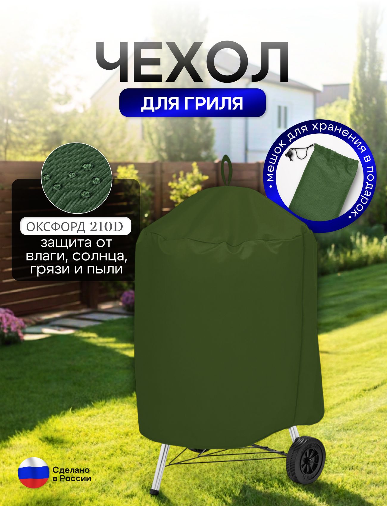 Эстетически привлекательный цвет гармонично вписывается в любые ландшафтные решения, а также отлично смотрится в вашем саду или на террасе. Этот чехол для гриля не только функционален, но и станет стильным дополнением вашего участка.