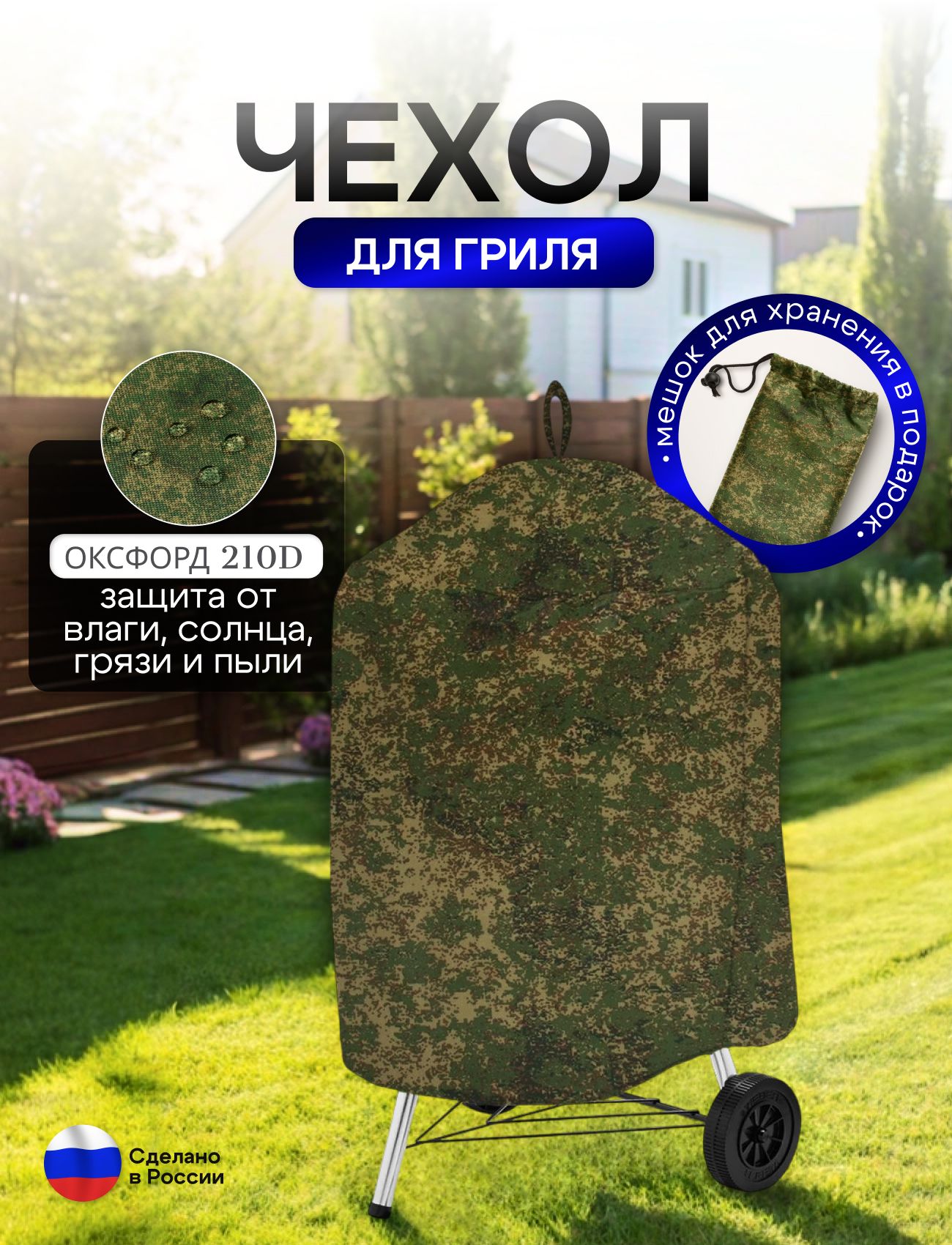 Изготовленный из высококачественных водоотталкивающих материалов, этот аксессуар обеспечивает надежную защиту вашего гриля, позволяя ему всегда выглядеть как новым. Чехол легко надевается и снимается, что делает его невероятно удобным в использовании. Прочное шнуровочное крепление помогает надежно зафиксировать чехол даже в условиях сильного ветра.