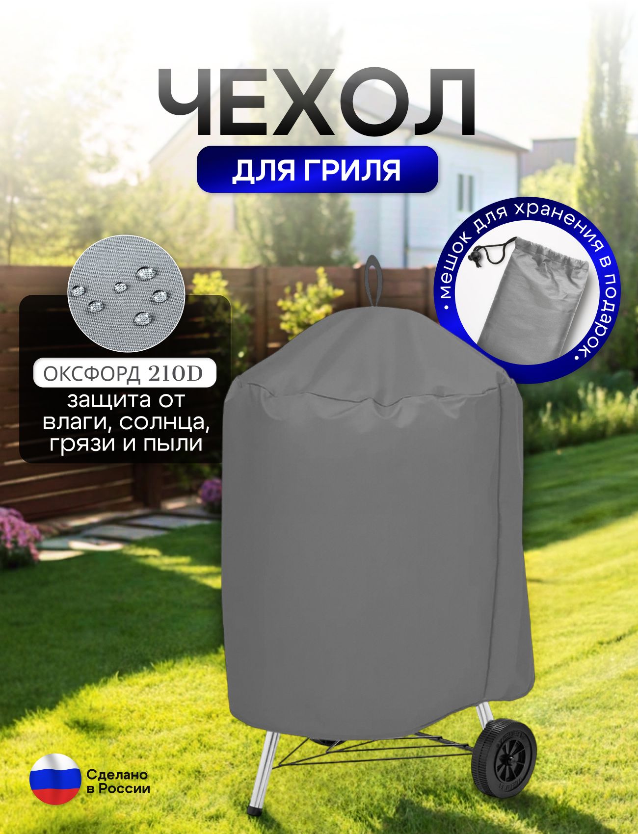 Подходит для всех грилей диаметром до 65 см, высотой до 70 см, благодаря своей универсальности. Защитите ваш гриль и продлите его жизнь с помощью этого практичного и стильного чехла. Отличный выбор для любителей пикников, барбекю и outdoor-активностей. Не упустите возможность обзавестись отличным аксессуаром, который обеспечит ваш комфорт и защиту. В комплекте мешок для хранения.